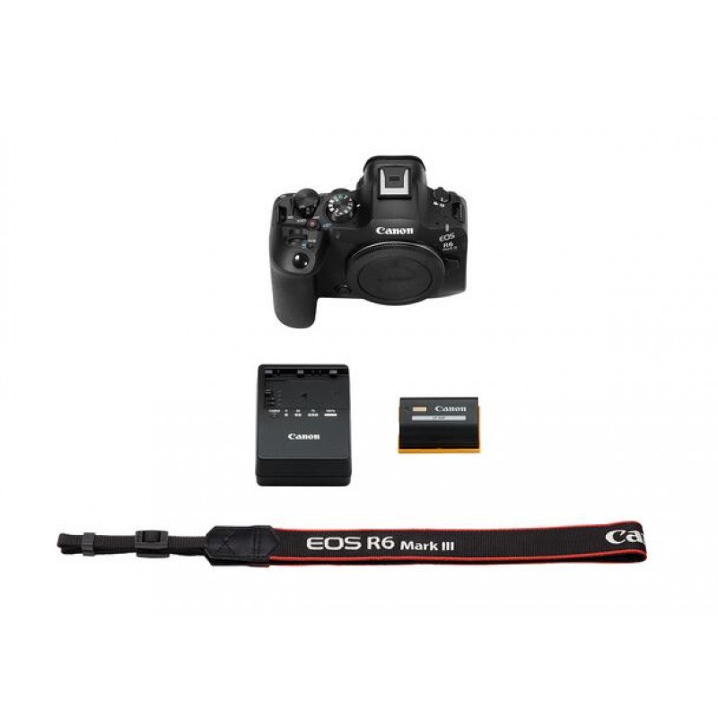 Canon EOS R6 Mark III este un aparat foto mirrorless full-frame cu un senzor de 32,5 MP care combină fotografierea de mare viteză la o rezoluție de până la 40 fps cu capacități video profesionale care acceptă 7K RAW și 4K 120p. Dispune de un sistem de autofocus Dual Pixel CMOS AF II îmbunătățit, stabilizare a imaginii de până la 8,5 stopuri și o carcasă durabilă din magneziu, rezistentă la praf și umezeală. Acest model este ideal atât pentru fotografie, cât și pentru videografie la nivel profesional.